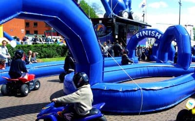 Nos pistes de courses gonflables sont adaptables pour les quads ainsi que les mini motos ou bien les karts.
